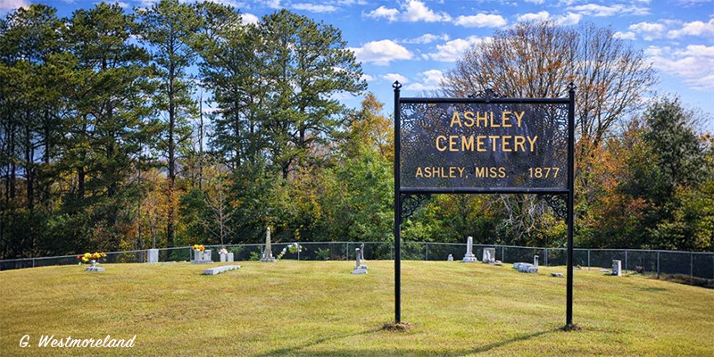 Ashley Cemetery is located on Ashley Road near Poplar Springs east-southeast of Hazlehurst. GPS: 31.801944, -90.261667