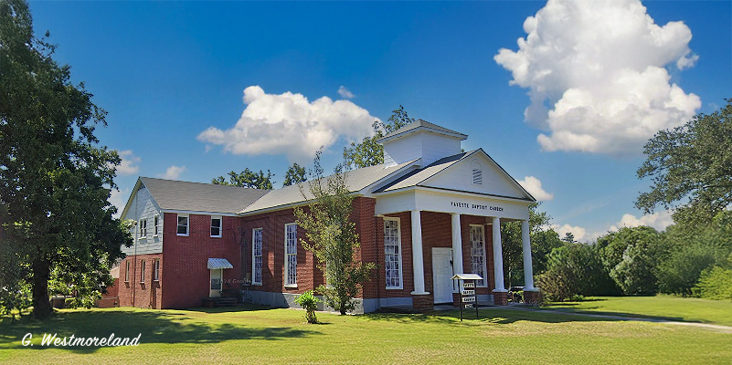 Fayette Baptist Church is at the intersection of Main Street, Hicks Street, and Harriston Road. GPS: 31.714217, -91.059332