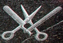 Sissors, Brush, Razor, &/or Comb - Person was probably a Barber / Hairdresser / Beautician.