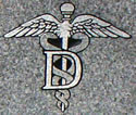 Staff of Asklepios with wings, double snakes & the letter "D" (Caduceus) - Doctor of Dentistry.
